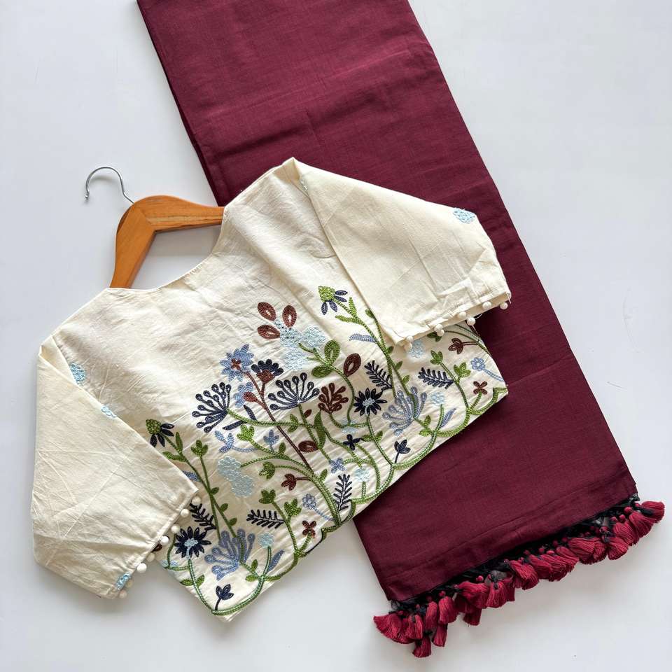 Product Name:Latest Collection Handloom Cotton With Work Blouse And Saree