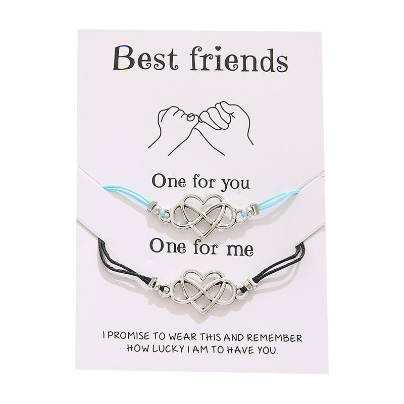 Vente chaude meilleurs amis amitié coeur Couple bracelet à breloques personnalité Simple Antique argent plaqué alliage de Zinc avec cartes