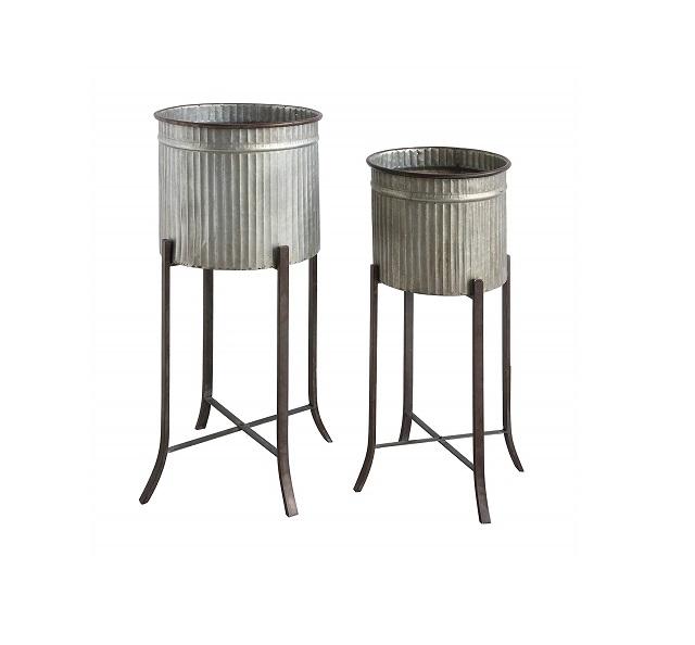Vente chaude Meilleure Qualité Jardinière Ronde En Fer Avec Support Antique Galvanisé Placage Pot De Jardin pour Mariage et Décoration Extérieure
