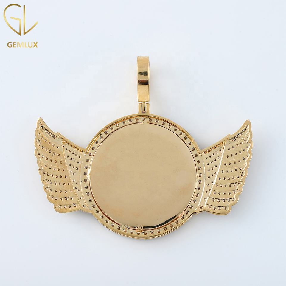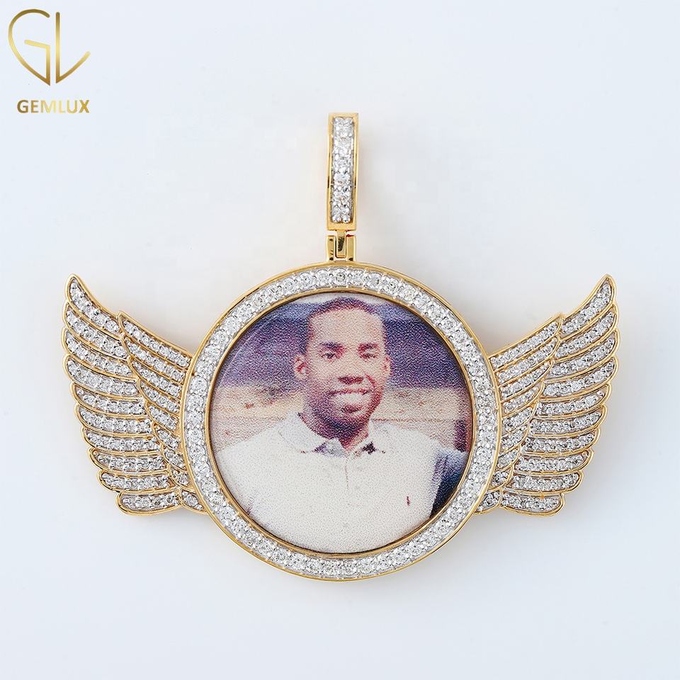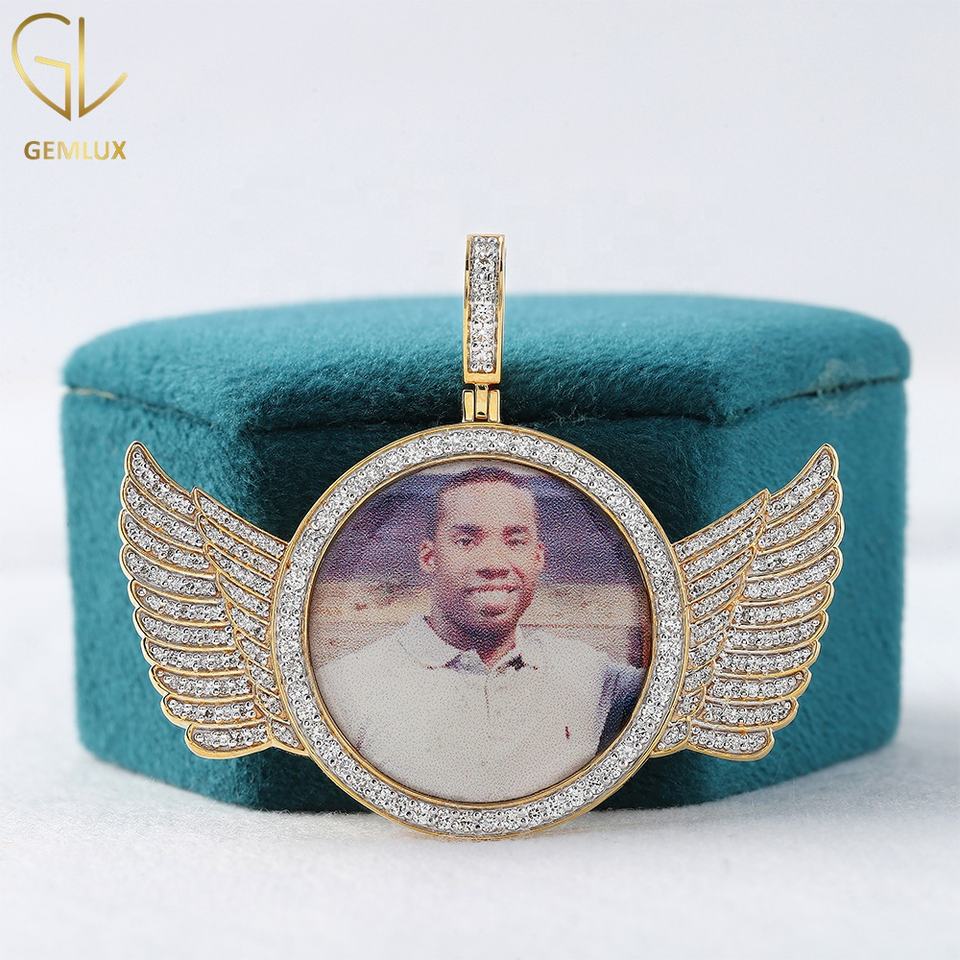 Hot Selling Bling Bling 925 Silver Moissanite Diamond Angel Wings Photo Memory HipHop Charm Pendant For Men Women