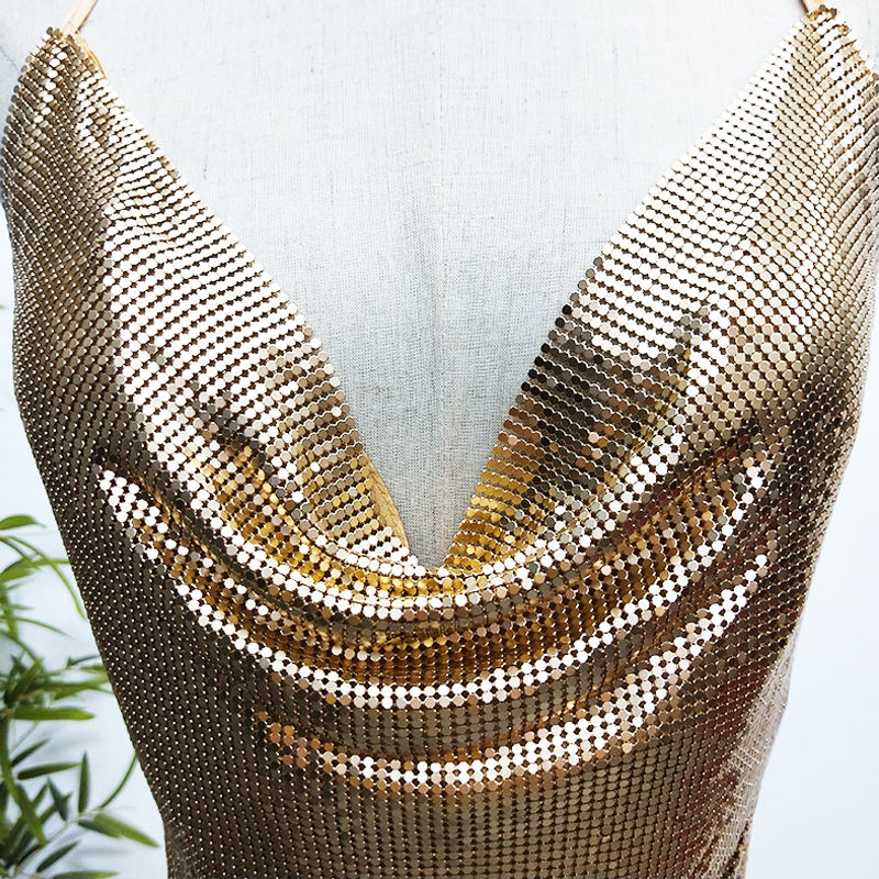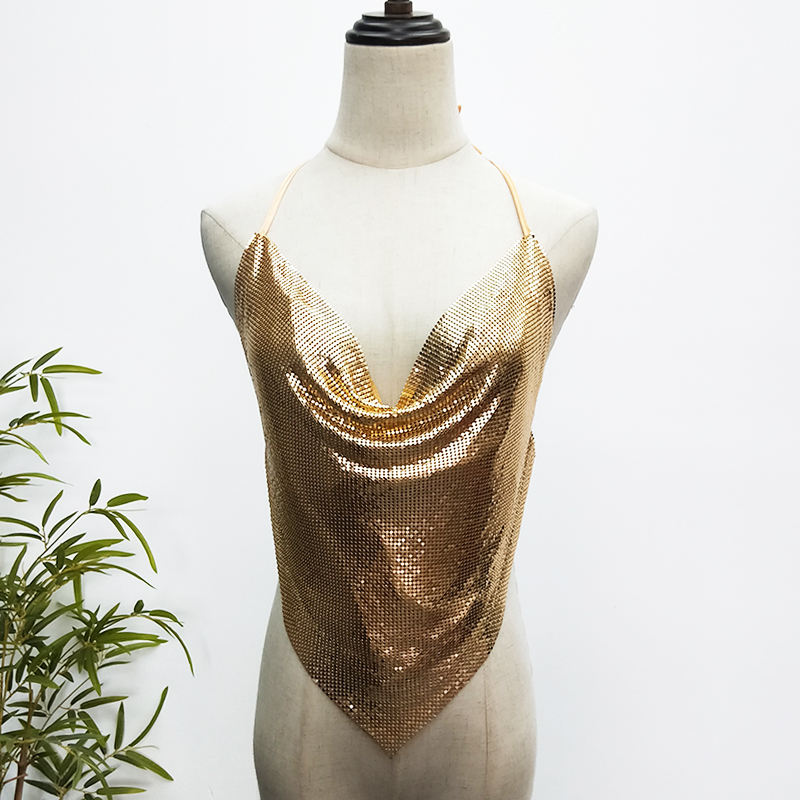 Product Name:Sexy Backless Women Metallic Aluminum Sequin Mesh Chainmail Crop Top