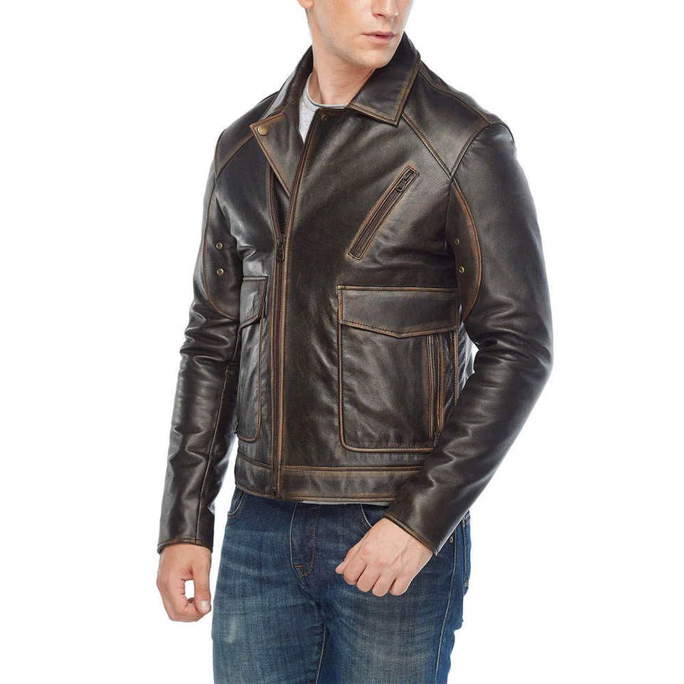 Veste en cuir véritable Bomber à la mode, poches personnalisées, nouvelle mode, veste en cuir pour moto, veste d'hiver pour hommes