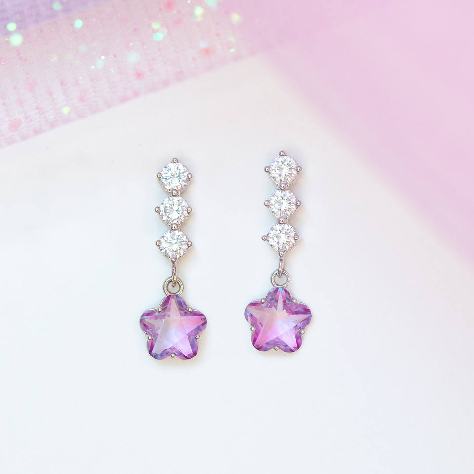 Vente chaude en laiton cubique Zircon Transparent rose fleur en forme de balancent Post boucle d'oreille pour les filles exquis CZ boucles d'oreilles goutte