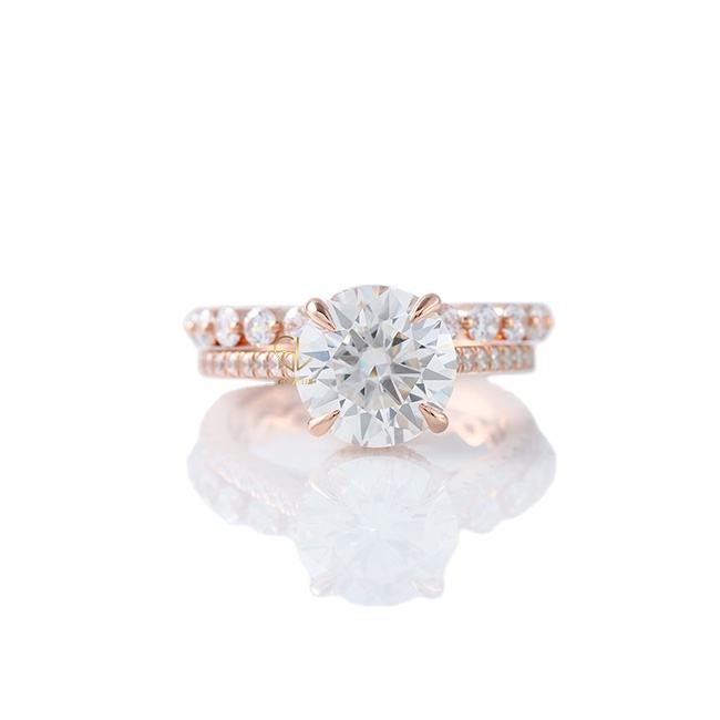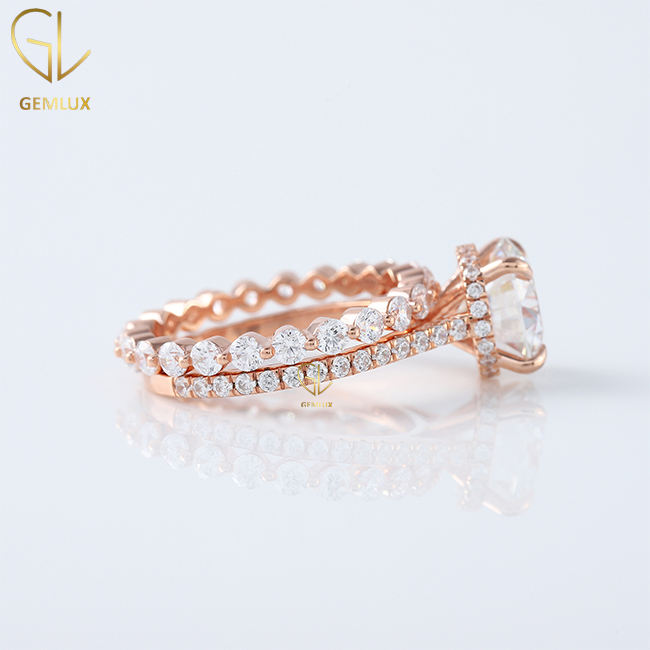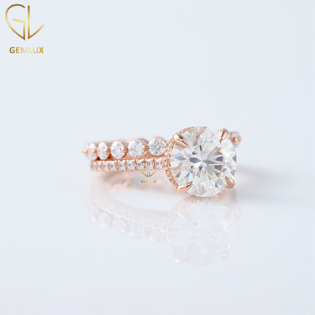 Vente chaude Bague De Mariée Ensemble Rond Moissanite Diamant Hidden Halo Solitaire Avec Accent Anneau Bulle Floatig Éternité Bande De Mariage