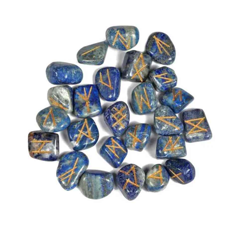 Ensemble de pierres runiques en lapis-lazuli sculptées, très demandé, cristal naturel pour la divination, la méditation, runes gravées, porte-bonheur d'amour