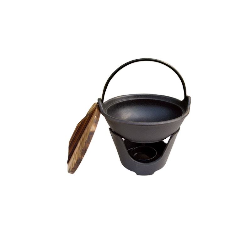Vente chaude en fonte pré-saison huile végétale ustensiles de cuisine casserole japonaise marmite avec plateau de couverture en bois, marmite de camping