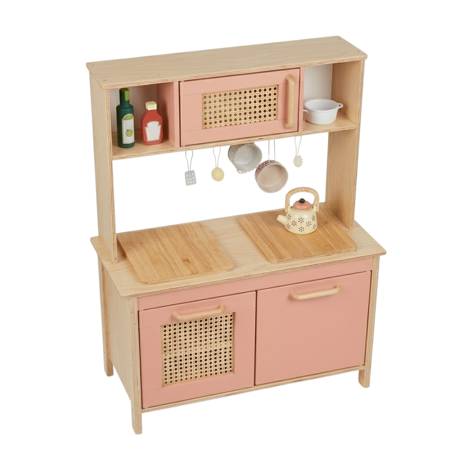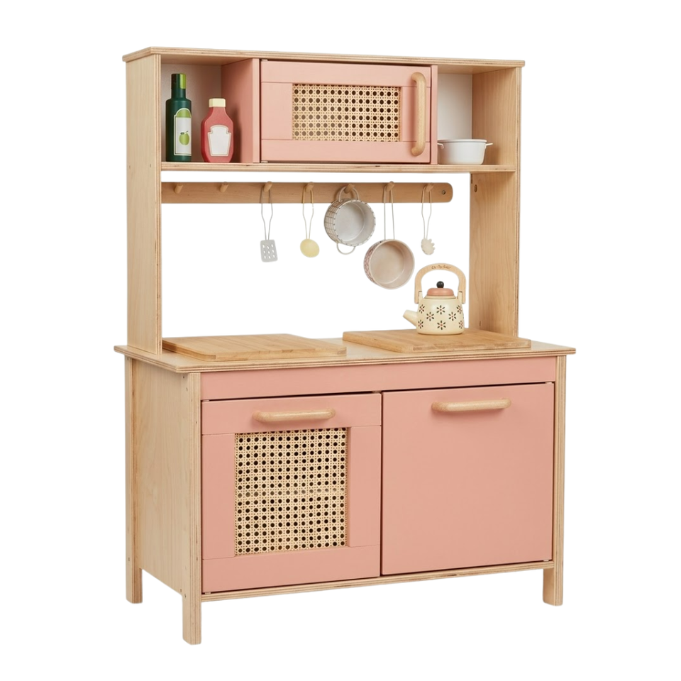 Cuisine de jeu en bois naturel pour enfants, ensemble de cuisine d'imitation pour enfants, vente en gros OEM ODM