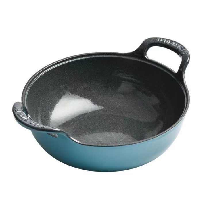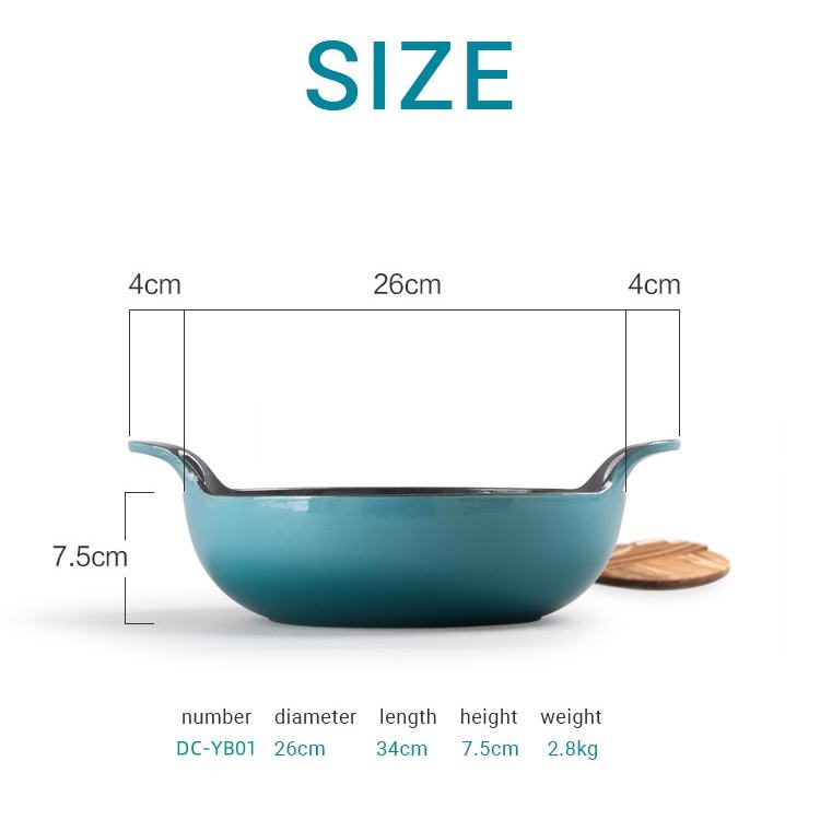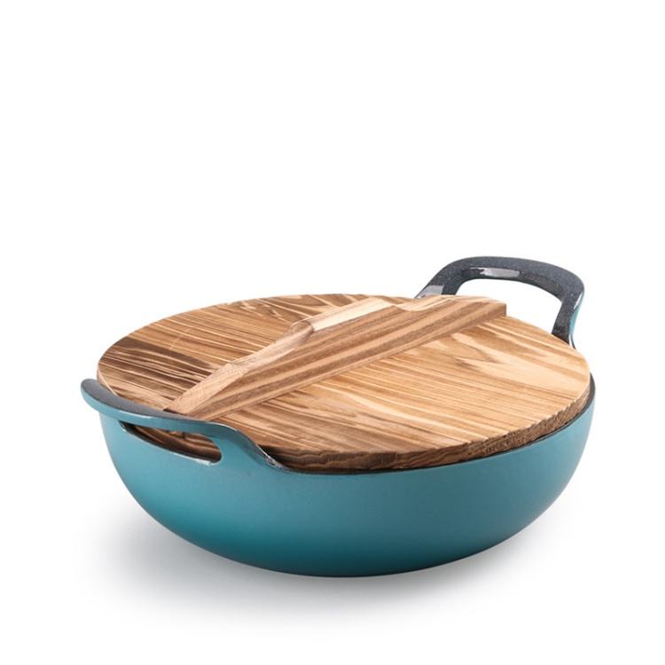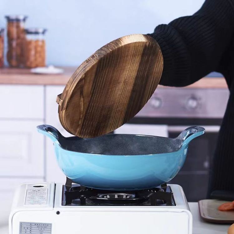 Vente chaude Chinois Grand Wok Rond Ustensiles De Cuisine 26cm Bleu Émaillé En Fonte Réchauffeur De Nourriture Casseroles Antiadhésif Faitout Avec Couvercle