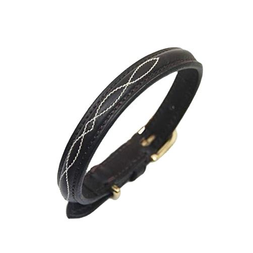 Hot Selling Classic Stitched Design Dog Collar Black Genuine Cow Leather Rivet Top Indian Supplier Manufacturer Wholesaler