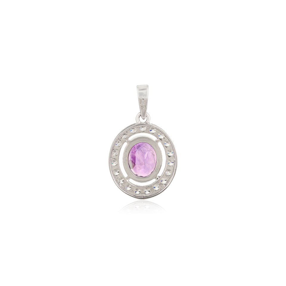 Pendentif Charme Groupe en Argent Sterling S925 Plaqué Rhodium, Finition Poli Miroir, Améthyste Naturelle de Forme Ovale, Très Vendu et Élégant