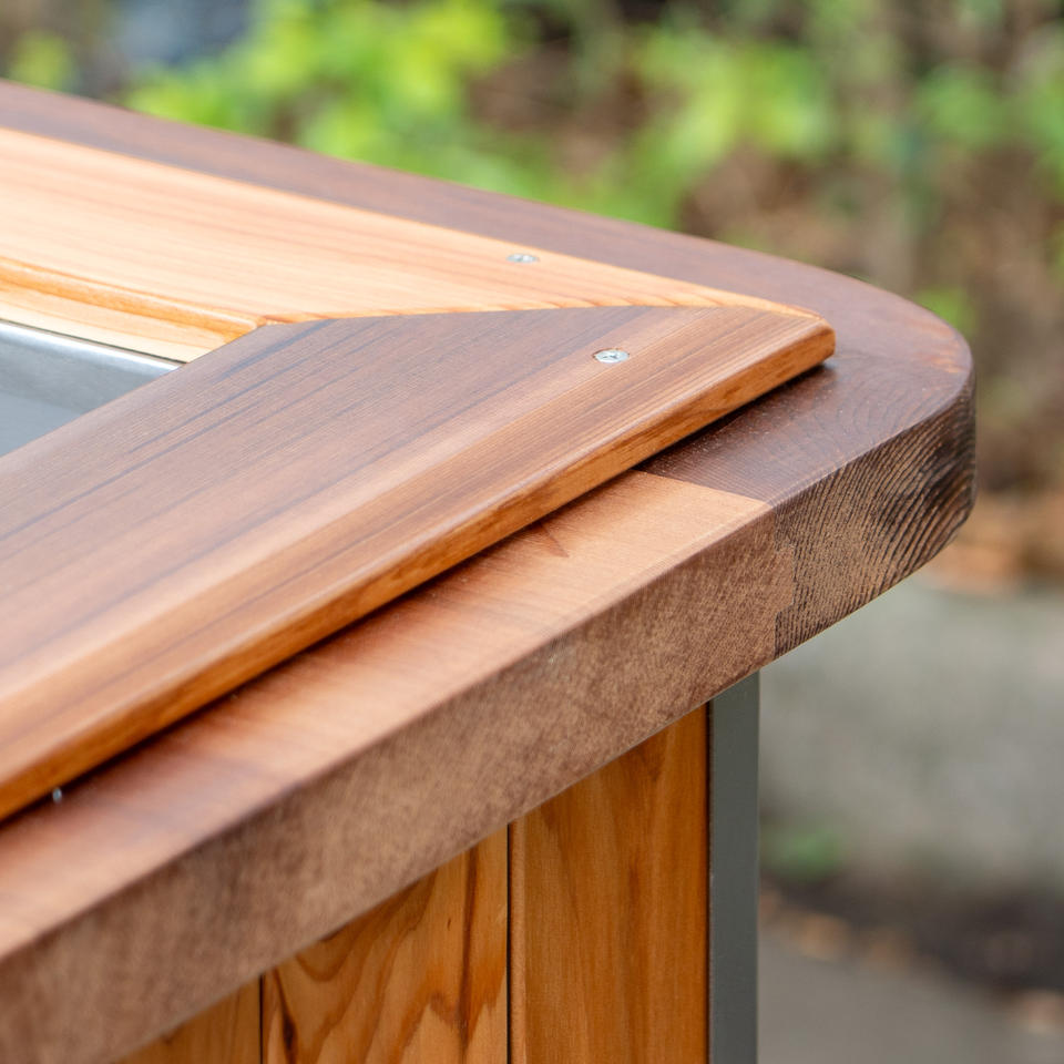 Cèdre rouge, Acier inoxydableMatériel