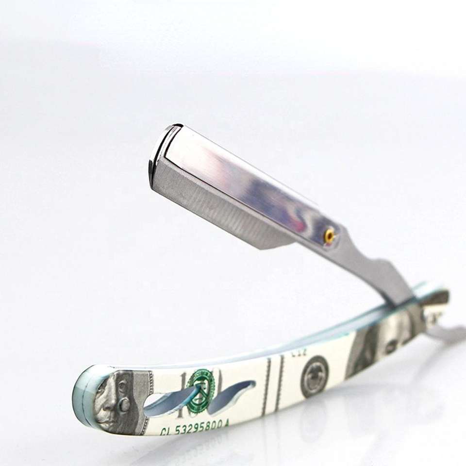 Rasoir manuel professionnel coloré à vente chaude, lame droite en acier inoxydable, rasoir de barbier tranchant, couteau à raser pliable pour la barbe