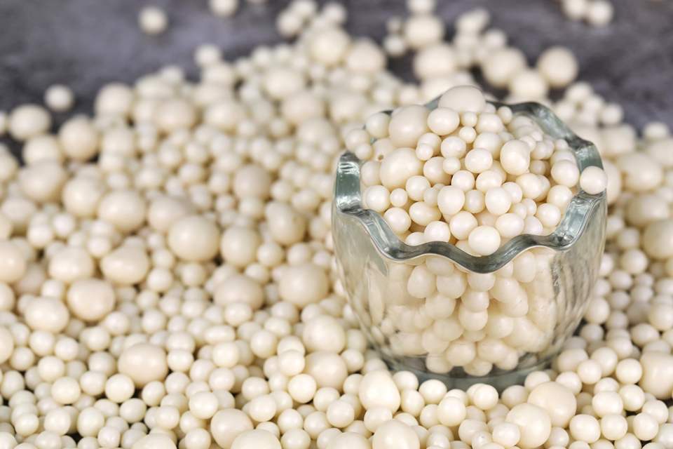 Boules croustillantes enrobées de chocolat blanc