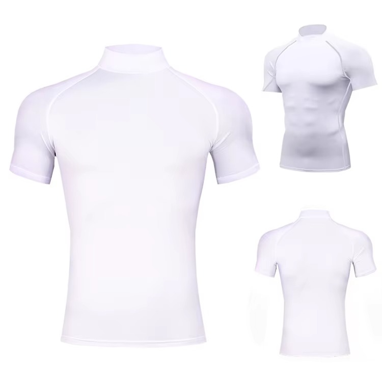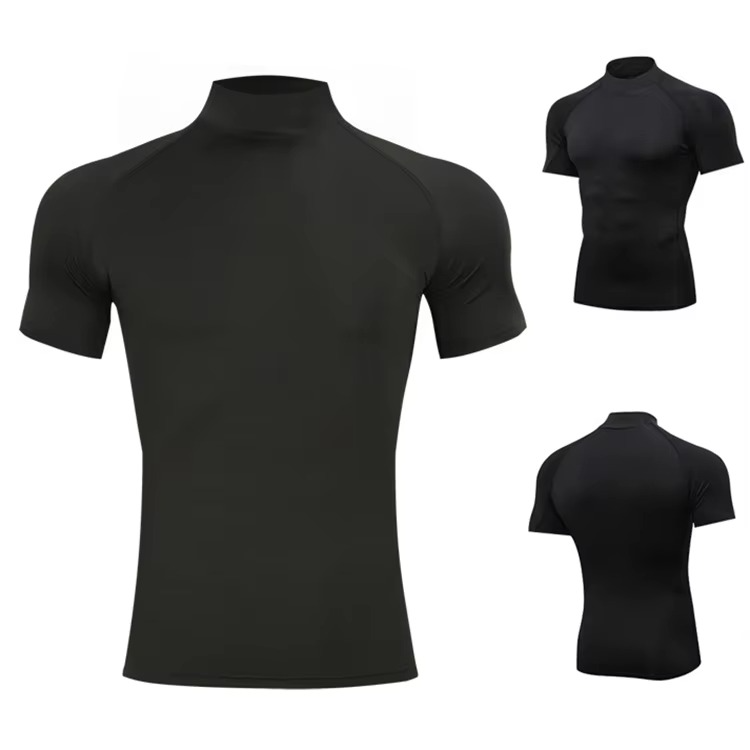 T-shirt de compression à col montant pour homme, séchage rapide, personnalisable avec logo, idéal pour la gym, le cyclisme et la natation – Nouvelle collection très demandée