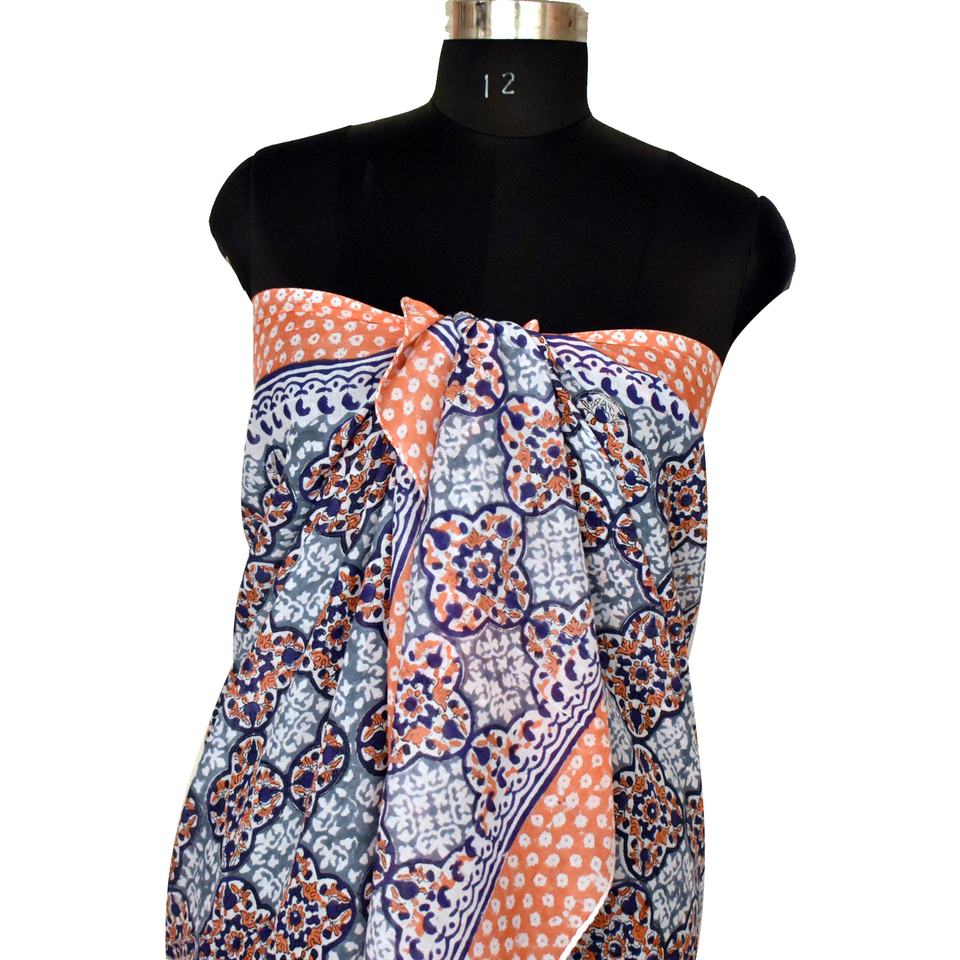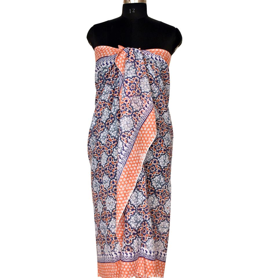 Paréo de plage long pour femme, fait main, en coton imprimé feuilles de Jaipur, protection solaire, vente chaude