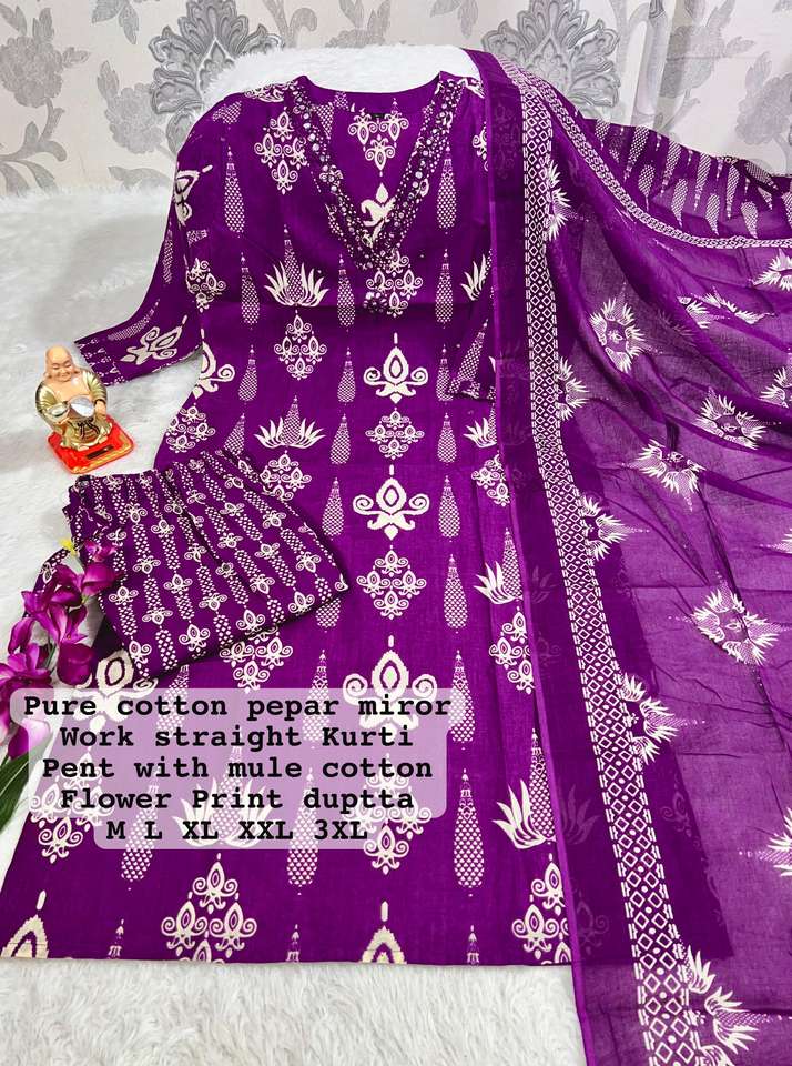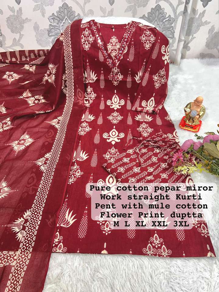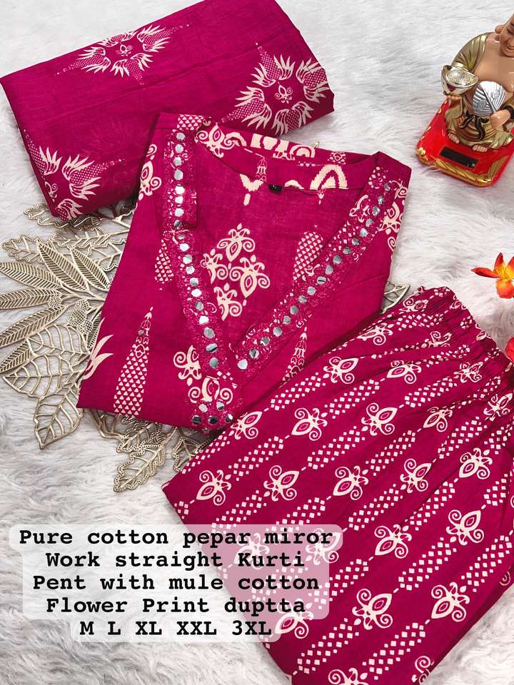 Hot Selling Cotton With Embroidery Work Kurti Pant And Dupatta