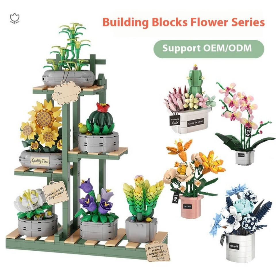 Ensemble de blocs de construction transfrontalier à succès, petit bouquet de fleurs en particules de plastique, assemblage, cadeau unique pour adultes, enfants, garçons