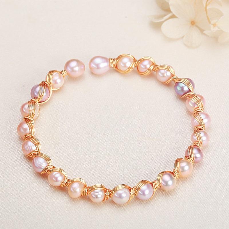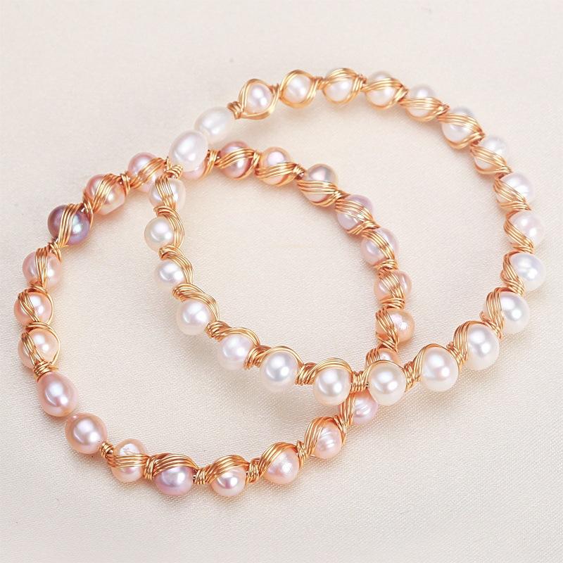 Bracelet en perles d'eau douce plaqué or cuivre, vente chaude transfrontalière, meilleur bracelet en perles véritables de Zhuji