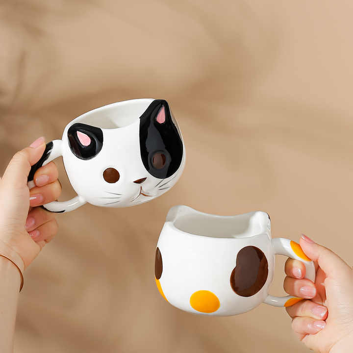 Vente chaude transfrontalière mignon femme Design en céramique chat tasse pratique petit déjeuner café et eau potable tasse cadeau