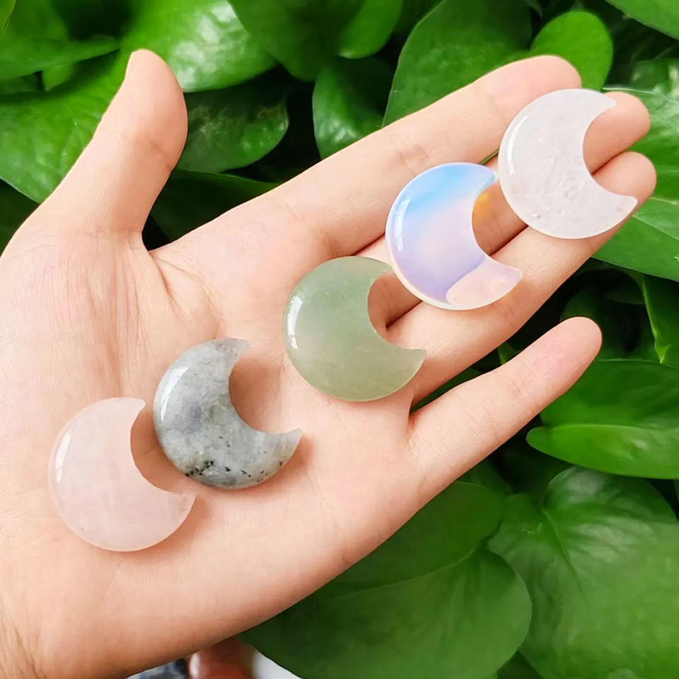 Vente chaude de sculptures de lune en cristal naturel, artisanat manuel, pierre de guérison, multi-matériaux