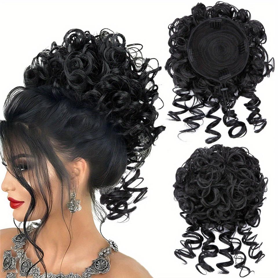 Vente chaude frisé vague profonde chignon africain désordonné frisé cordon queue de cheval perruque synthétique Extension de cheveux accessoire de cheveux