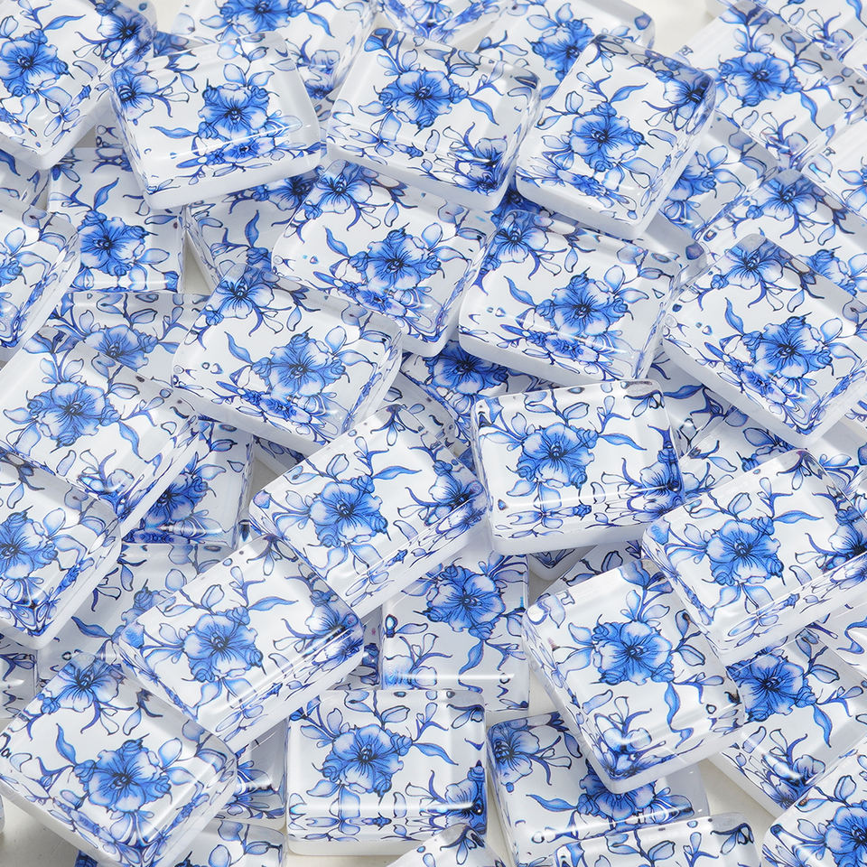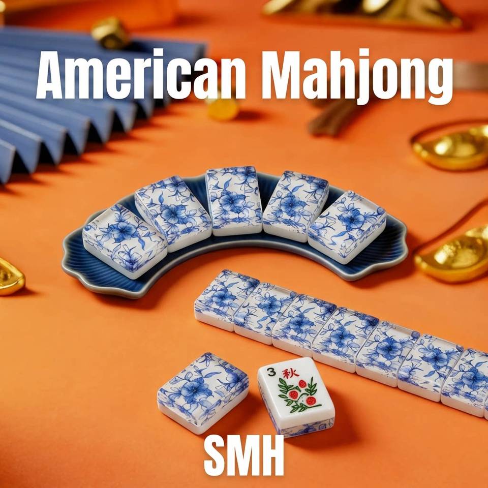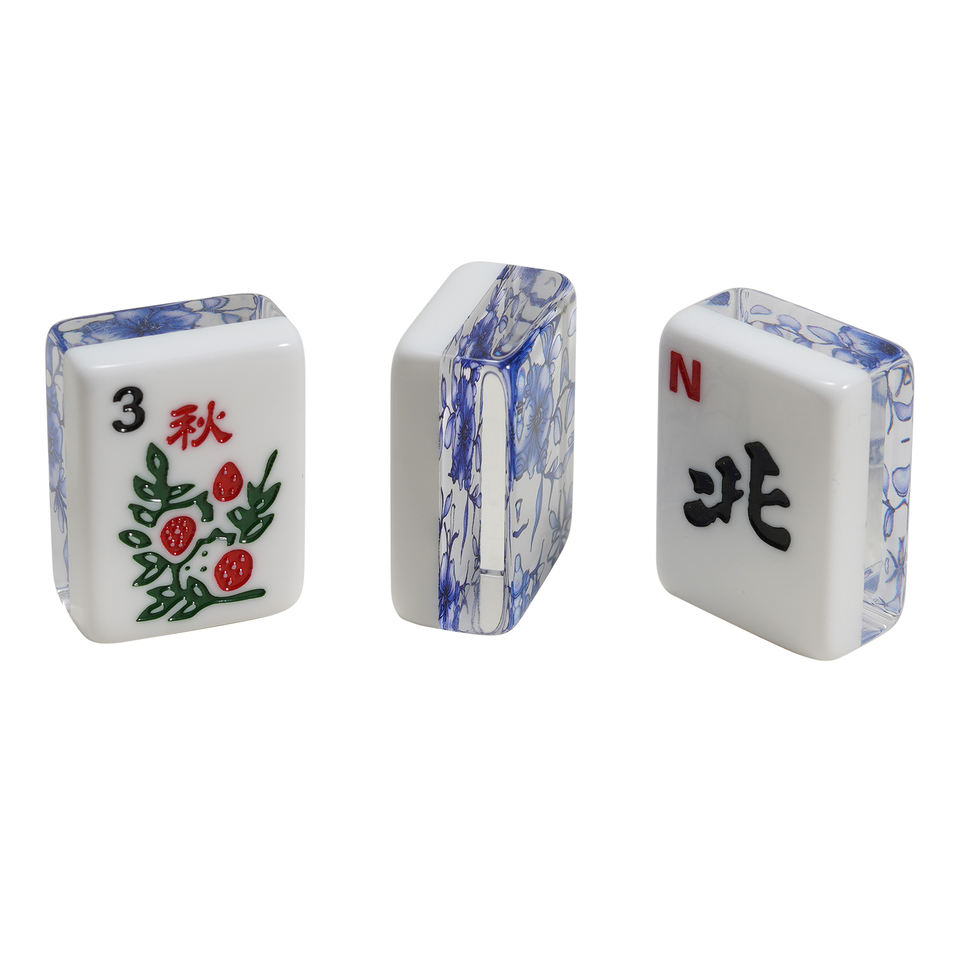 Mahjong américain en acrylique à 2 couches, motif floral bleu personnalisé, gravé, idéal pour les soirées et le divertissement – Vente chaude