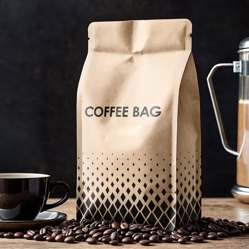 Sacs d'emballage en aluminium à fond plat, étanches, pour grains de café et sushis, avec valve, en plastique, personnalisables, vente chaude