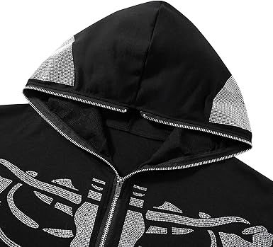 Sweat à capuche vintage personnalisé à fermeture éclair et strass pour homme, 100% coton, manches longues, coupe courte, veste à capuche pour l'hiver