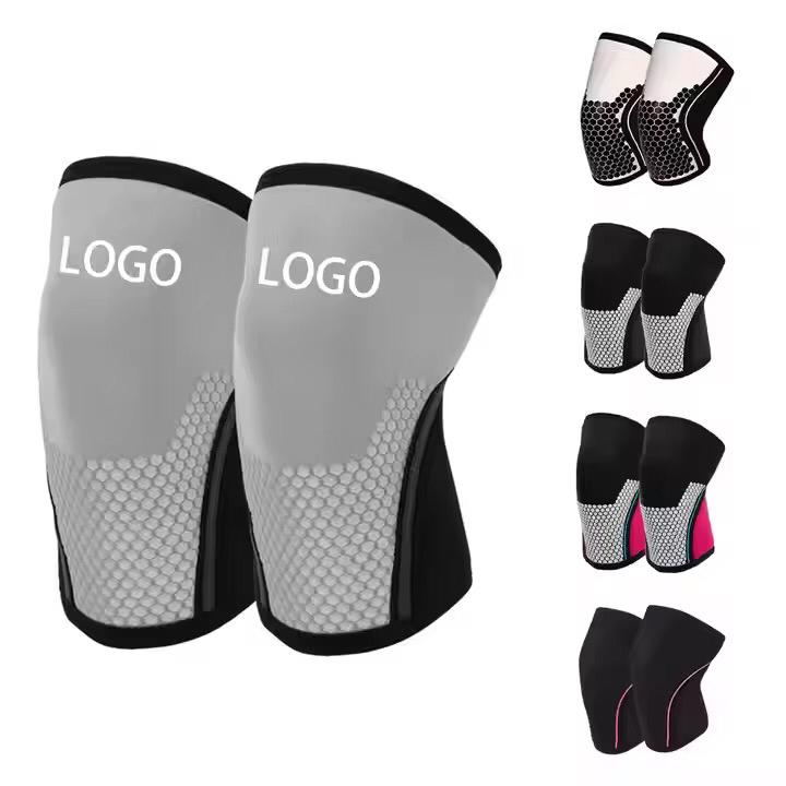 Manchon de genou en nylon spandex de 7 mm pour la musculation, logo personnalisé, vente chaude, haute qualité, doux, confortable, respirant, anti-UV