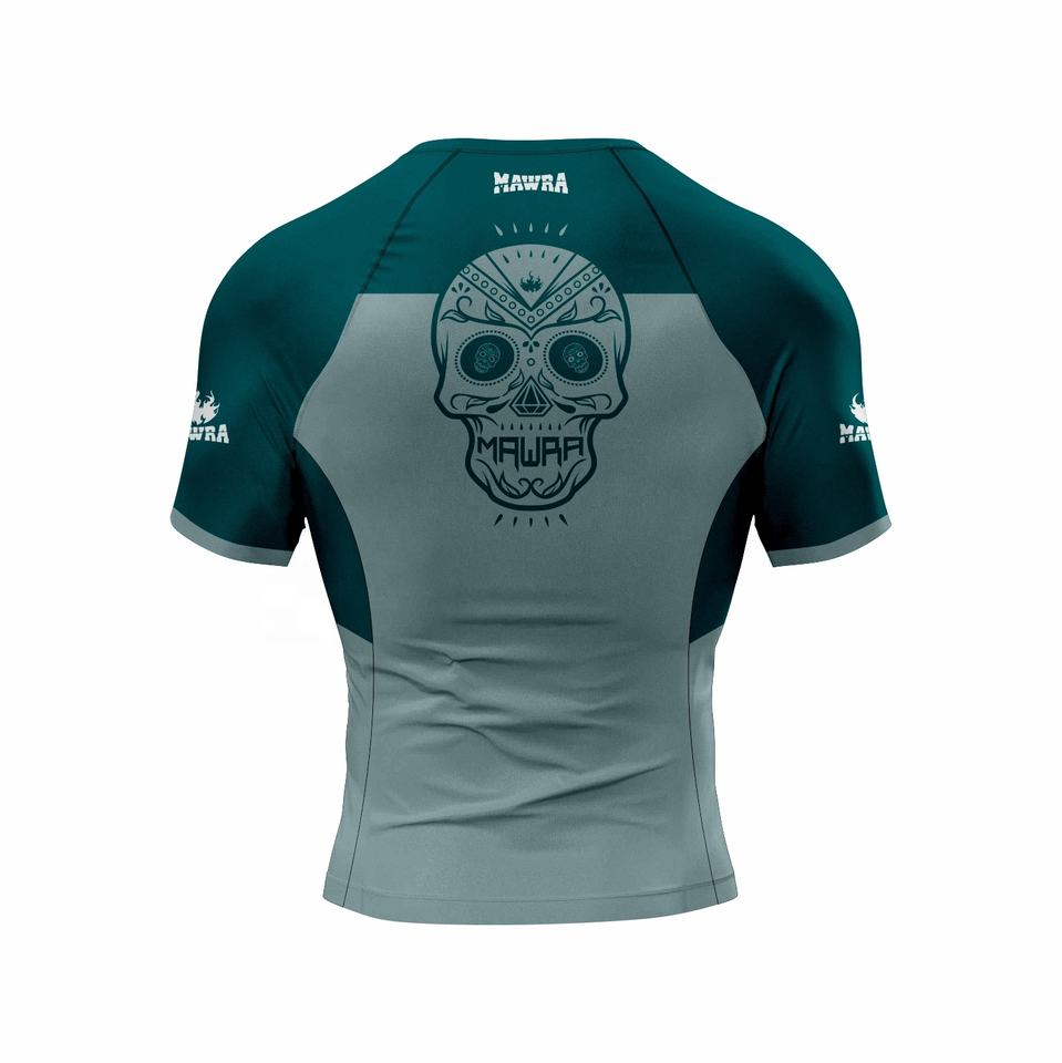 Vente chaude Logo Personnalisé Jiu Jitsu Rashguard Compression Chemise Unisexe BJJ Formation MMA Anti-UV À Manches Courtes Respirant 85%