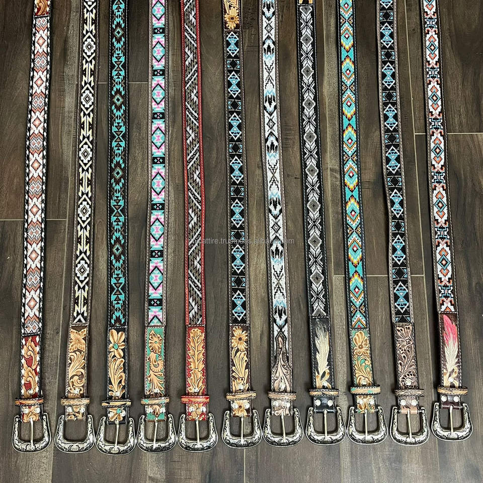 Product name:Hand Tooled Leather Beaded Pin Buckle Belt