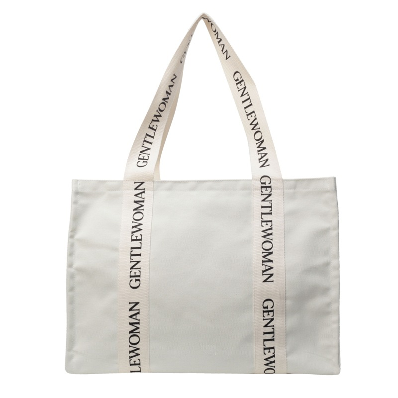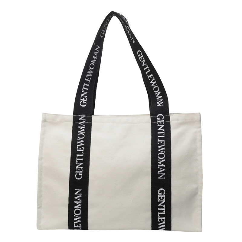 Offre spéciale sac à provisions de luxe avec logo surdimensionné personnalisé toile coton bande poignée lettres imprimées logo personnalisé