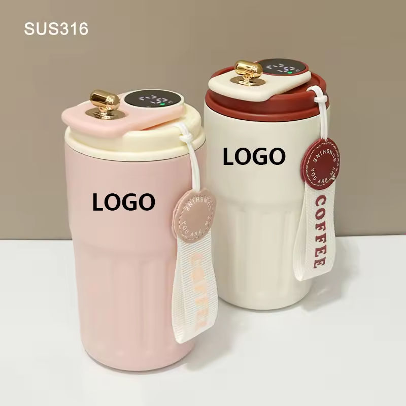 Tasse à café isotherme en acier inoxydable avec affichage de la température et logo personnalisé, gourde intelligente, vente chaude