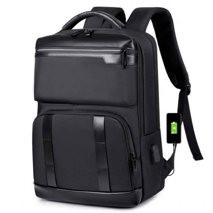 Sac à dos à port USB personnalisé, grande capacité 15,6 pouces, étanche en PU, design extensible, en polyester Oxford avec fermeture éclair – Vente chaude
