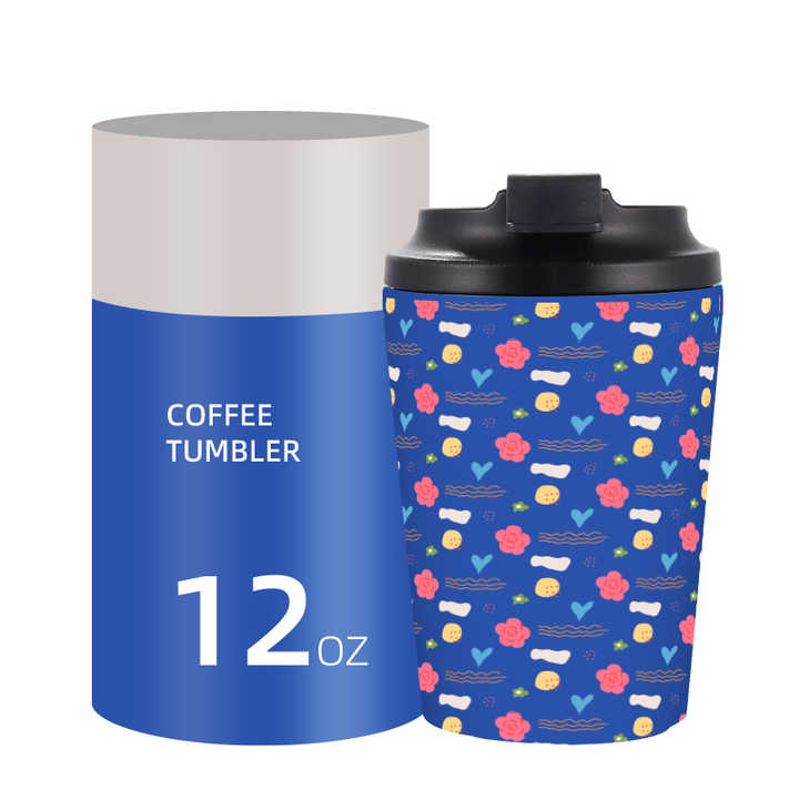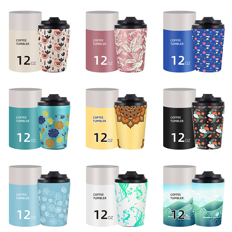 Vente chaude Personnalisé Imprimé 12 oz Réutilisable En Acier Inoxydable Double Paroi Vide Voyage Café Portable Voiture Tasse Thermos Gobelet Tasse