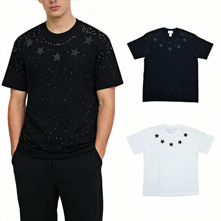 T-shirts personnalisés à strass très demandés, vêtements pour hommes, noir, nouveau design, manches courtes, 100% coton, t-shirt pour hommes