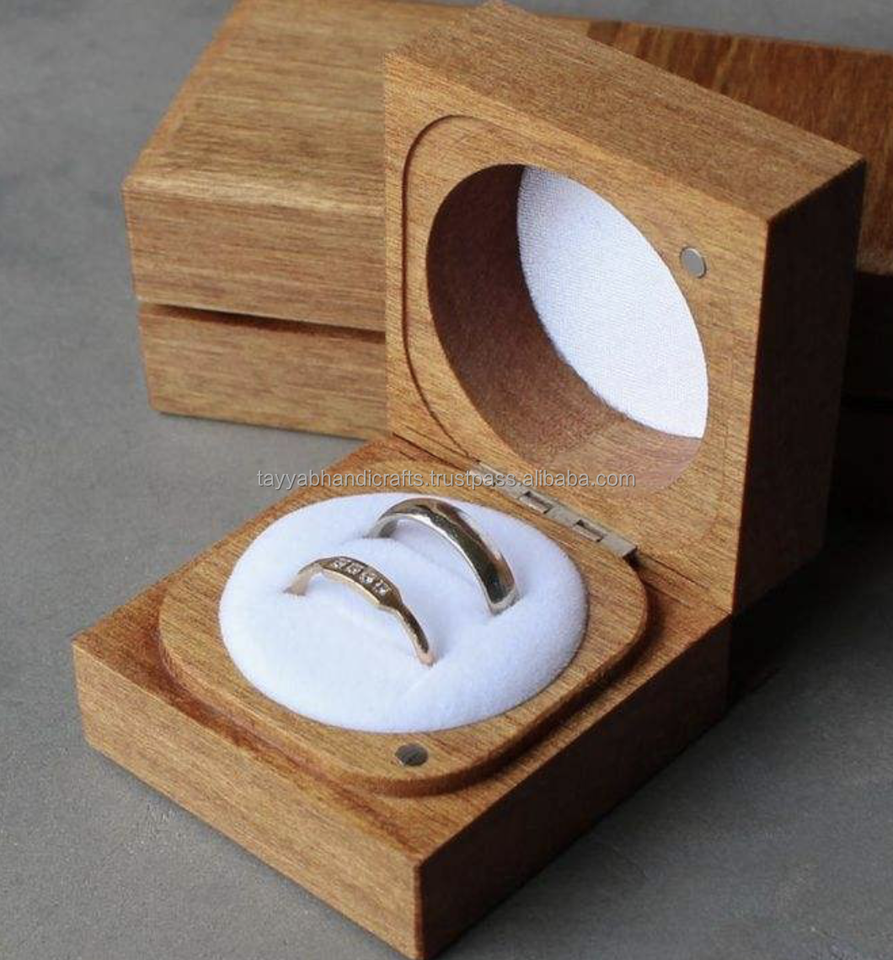 Vente chaude personnalisé boîte à bagues en bois élégant fiançailles mariage porte-bague proposition fabriqué à la main 3 pouces Tayyab artisanat bijoux