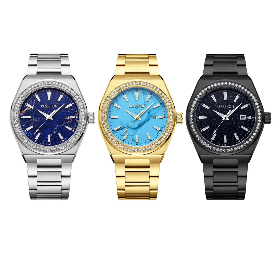 Montre Homme à Quartz en Acier Inoxydable Étanche avec Verre Saphir et Diamants, Personnalisable avec Votre Logo – Nouvelle Collection Tendance