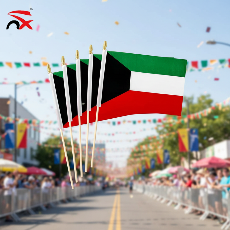 Drapeau du Koweït à agiter à la main, personnalisé, 10*15CM 14*21CM, avec mât en bois, pour encourager les jours nationaux et les matchs de football - Vente chaude