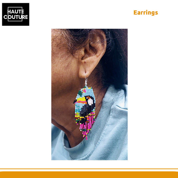 Boucles d'oreilles en perles faites à la main personnalisées de vente chaude pour femme Boucles d'oreilles en perles à franges Toucan du fabricant indien le plus répertorié