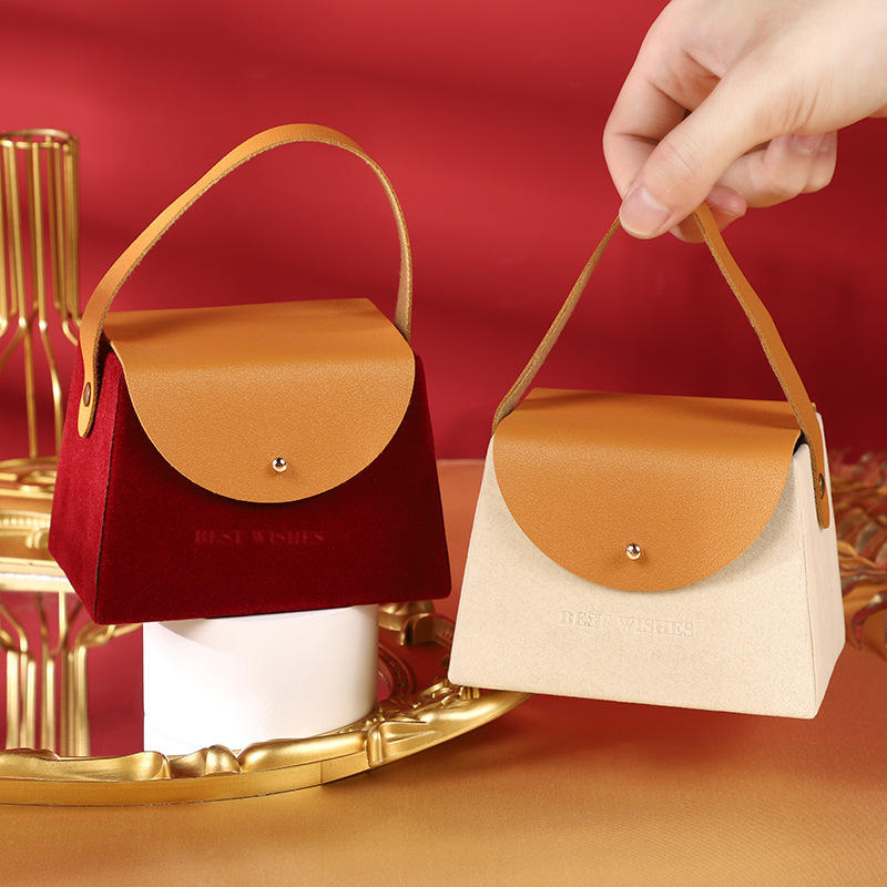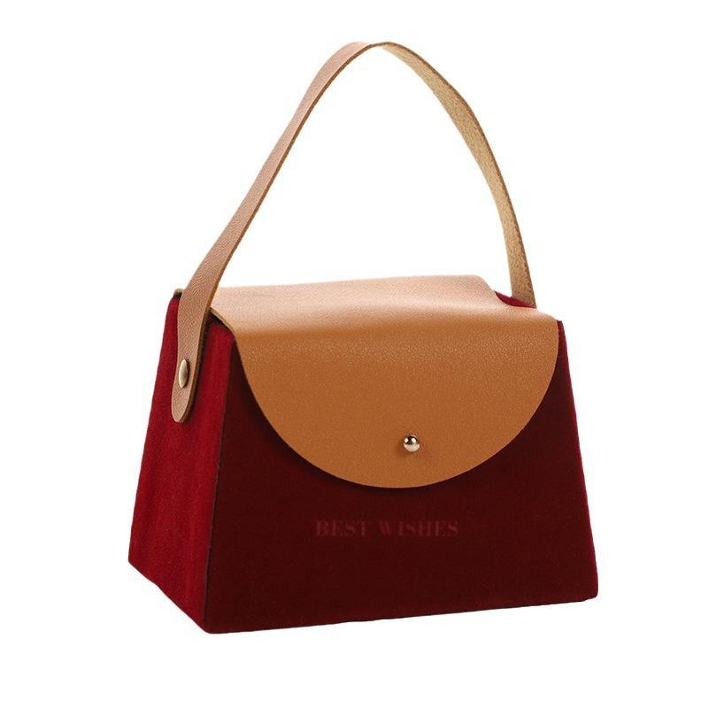 Offre spéciale, boîte de mariage trapézoïdale floquée avec logo personnalisé, boîte à bonbons, boîte à cadeau de luxe en velours avec poignée