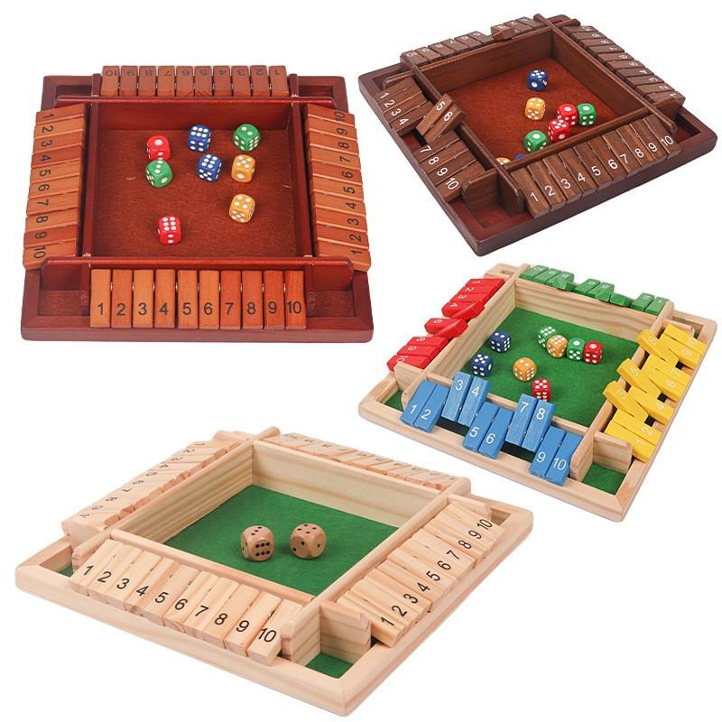 Jeux de société en bois personnalisés à succès avec 4 joueurs, jeu de dés Shut the Box pour enfants et adultes
