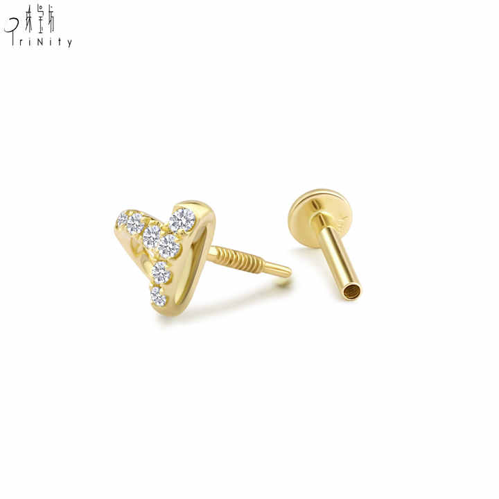 Boucles d'oreilles en or massif 14 carats avec diamant naturel véritable, design cœur mignon, très tendance, pour fille, usage quotidien.