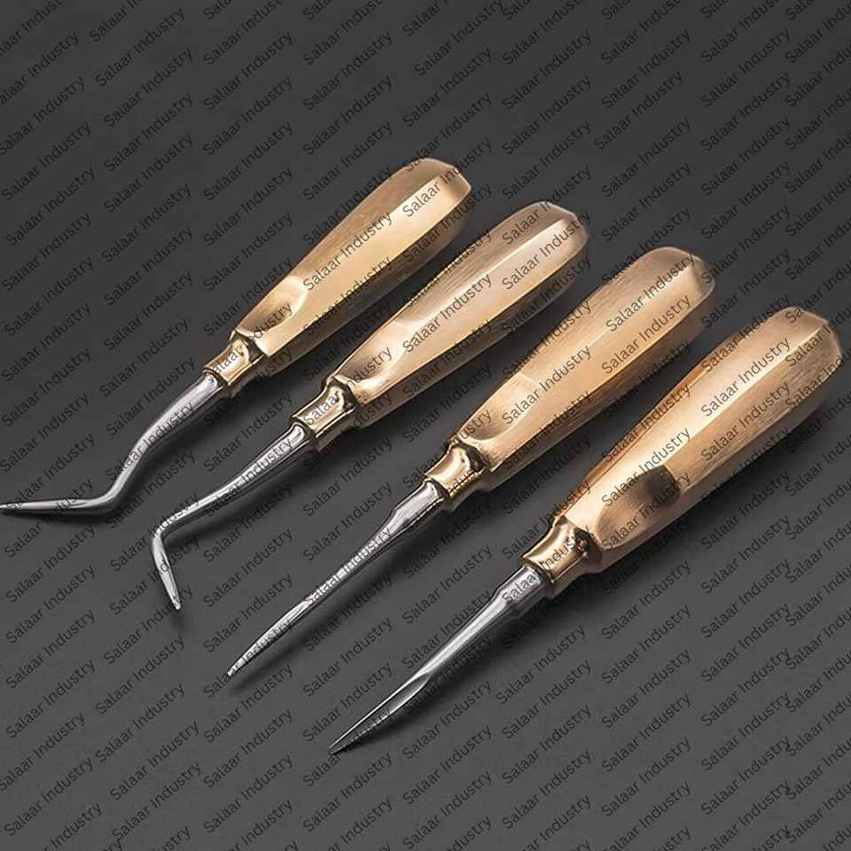 Hot Selling Dental Elevator Gold Finish Stainless Steel Luxating & Serrated Dental Root Elevators for Tooth Extraction Equipment