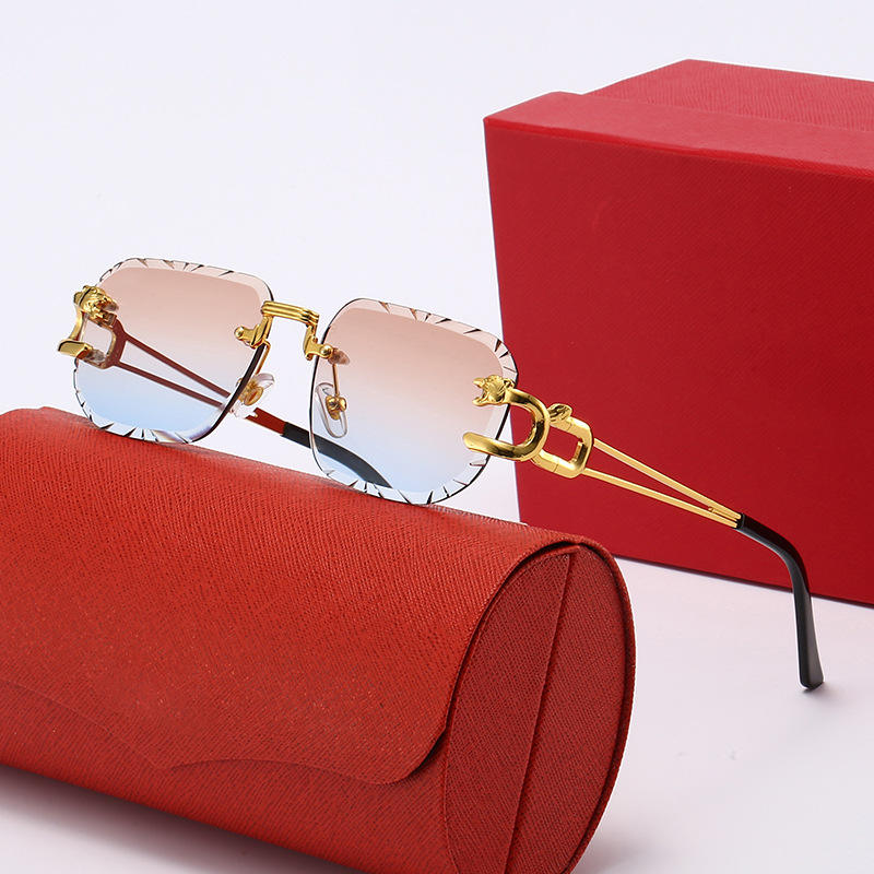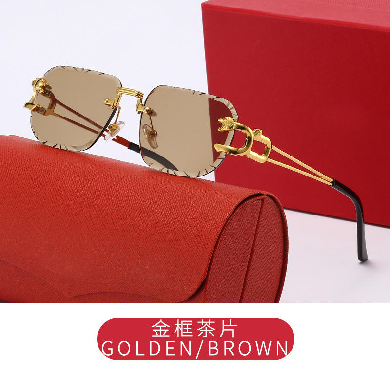 Lunettes de soleil rétro de créateur très tendance, de haute qualité, à double pont, avec tête de léopard de luxe, monture métallique de marque