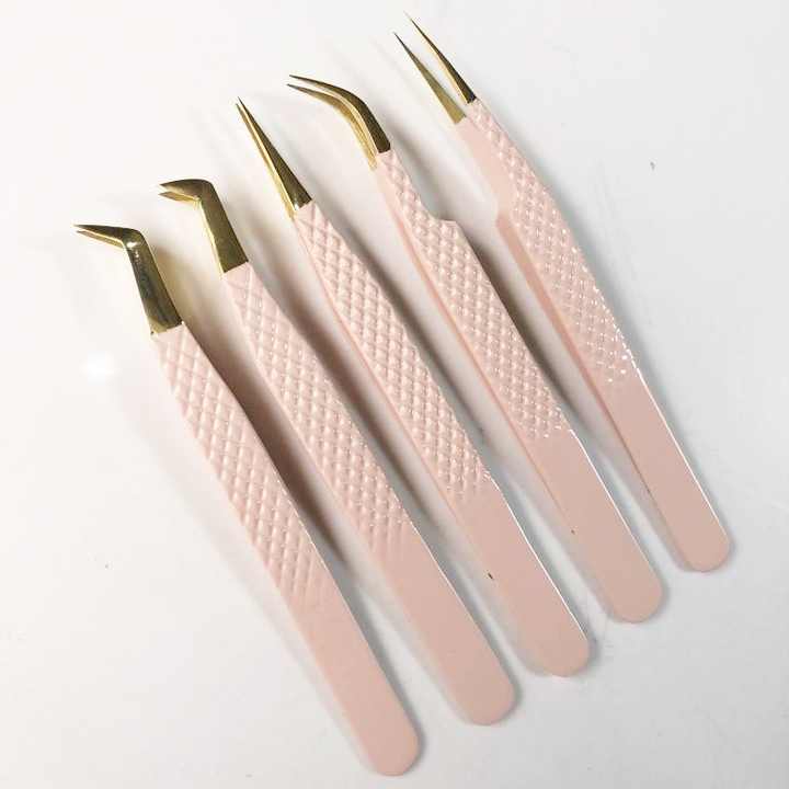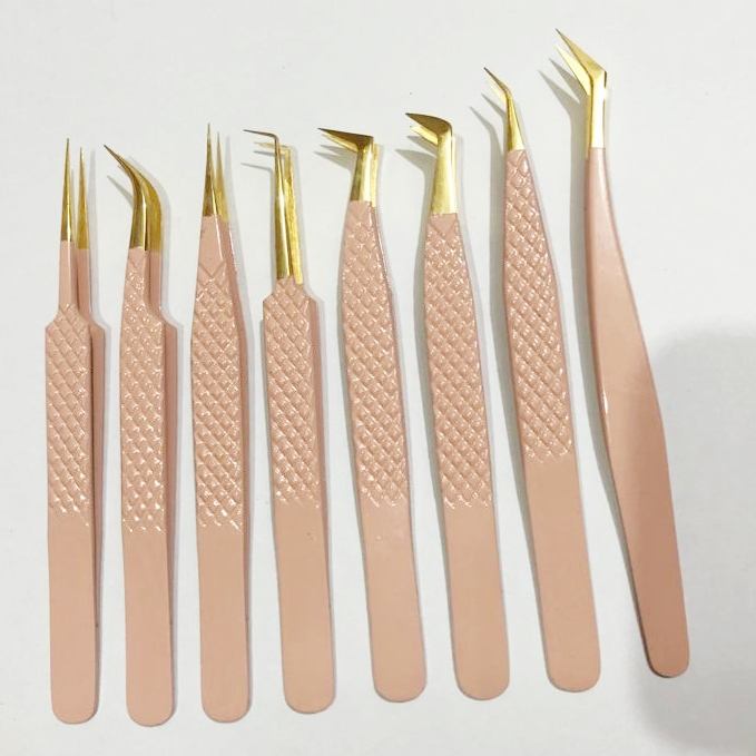 Pince à épiler d'extension de cils de poignée de diamant de vente chaude avec le volume durable de pointe d'or 24k et la pince à épiler de cils d'isolement