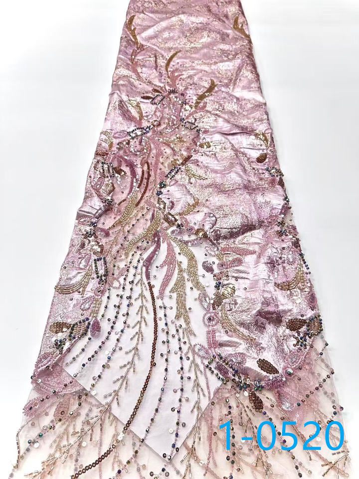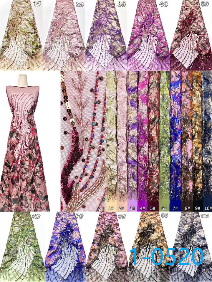 Tissu en dentelle diamantée à succès, vente en gros d'usine, prix abordable, nouvelle tendance, tissu en dentelle brodé floral avec perles pour robes féminines
