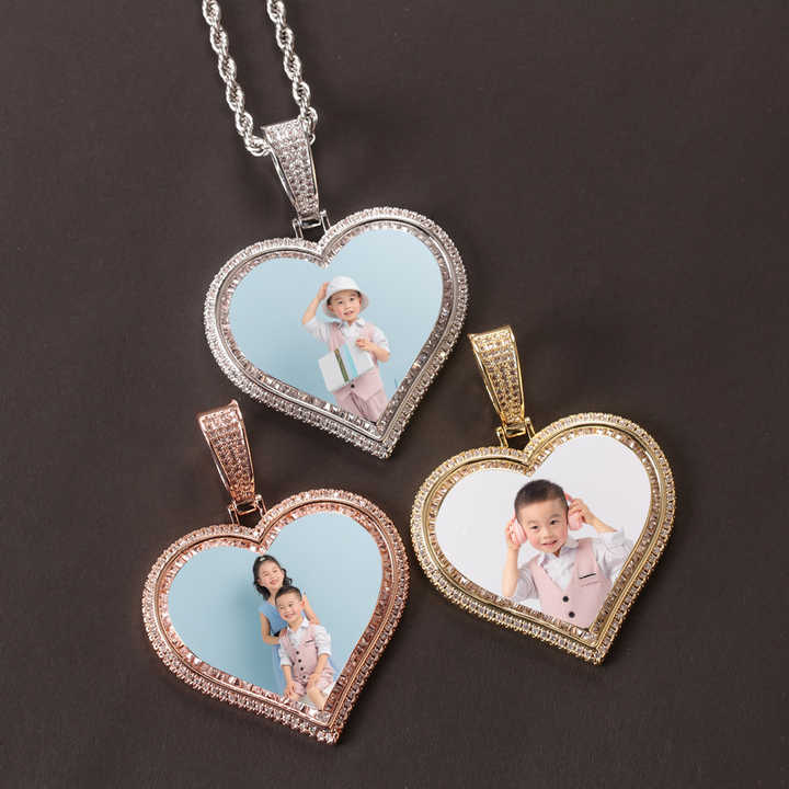 Vente chaude bricolage mémoire photos personnalisé double couche amour mâle et femelle couple pendentif zircon hip hop photo collier