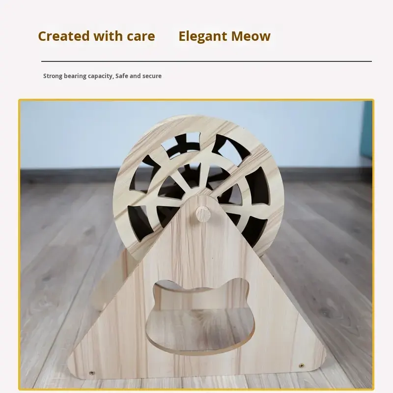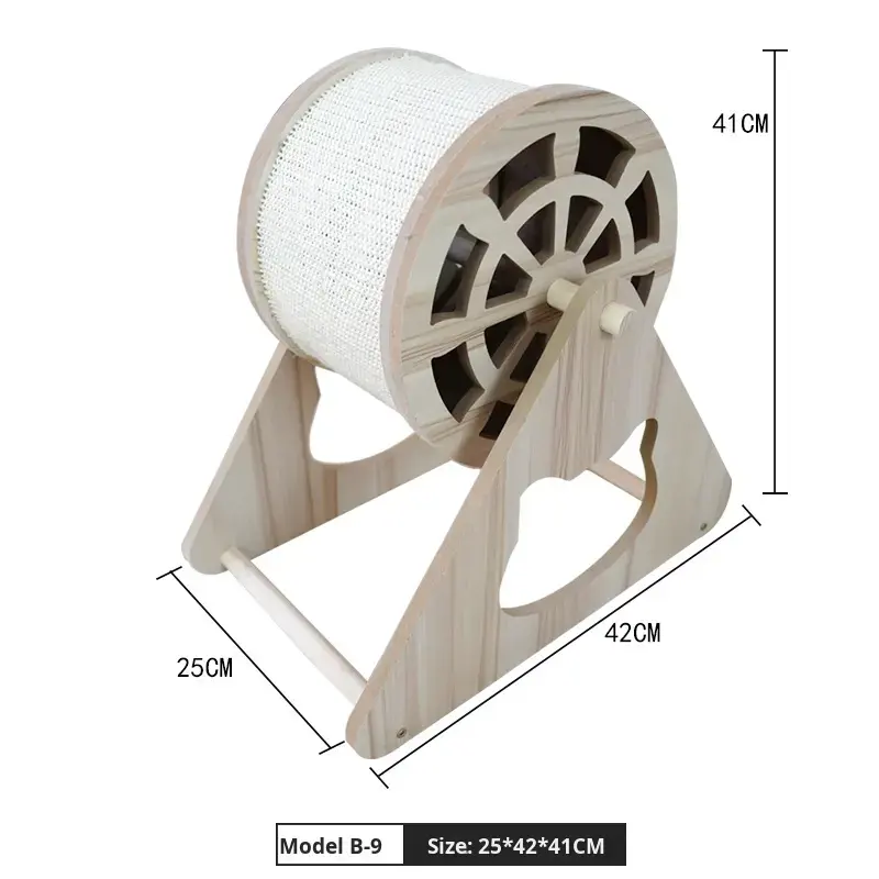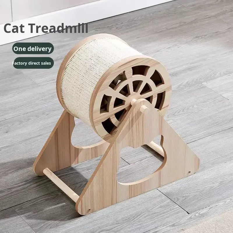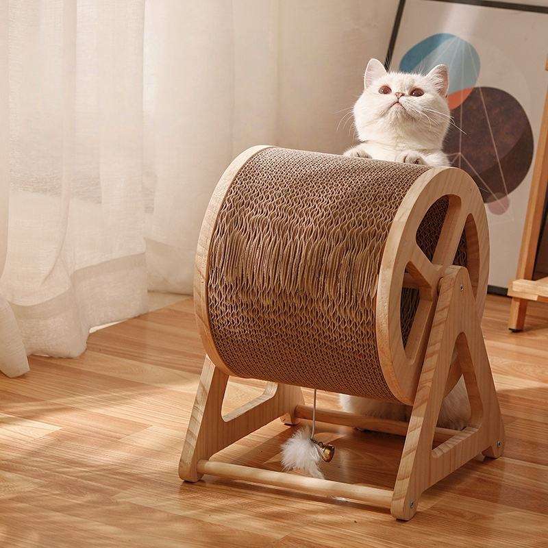 Jouets pour chats très demandés, durables et résistants aux rayures : Griffoir pour chat en bois massif en forme de grande roue, avec broyeur de griffes en sisal