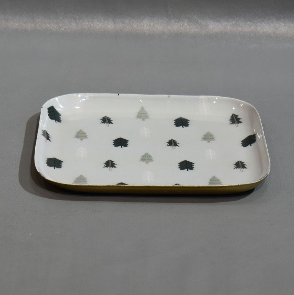 Vente chaude Écologique En Métal Assiette De Service Durable Arbre De Noël Conception Émail Polonais Chargeur pour La Maison Cuisine ou Les Parties